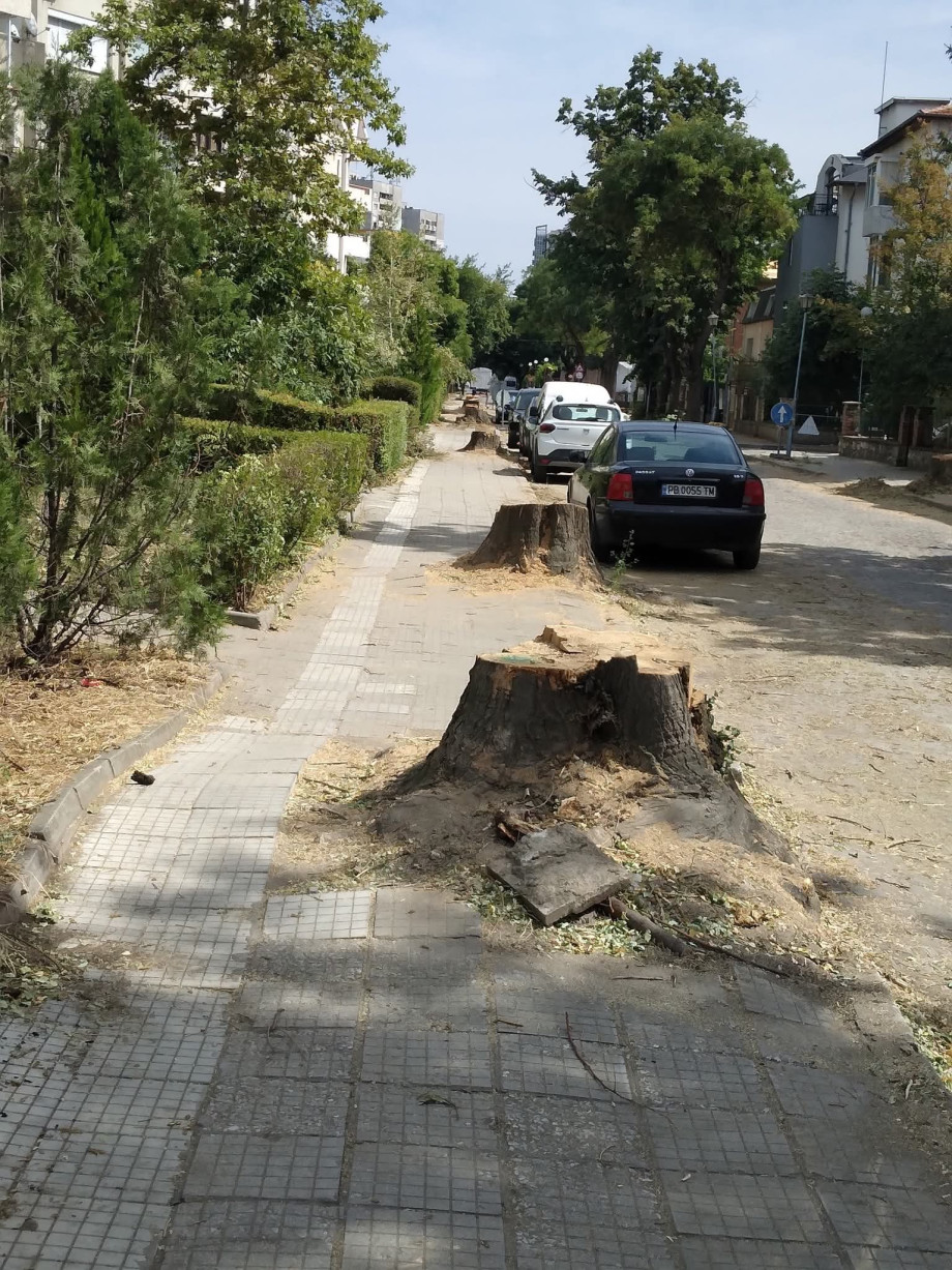 Против отсичането на десетина(останали) 60-годишни дървета на ул Славянска.